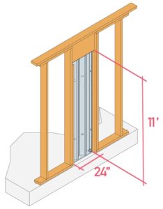 Emplee los planos S-1 “Foundation & 1st floor plan” y S-2 “2nd floor framing plan” como plantillas de referencia. A continuación se ilustran las dimensiones del elemento a insertar: