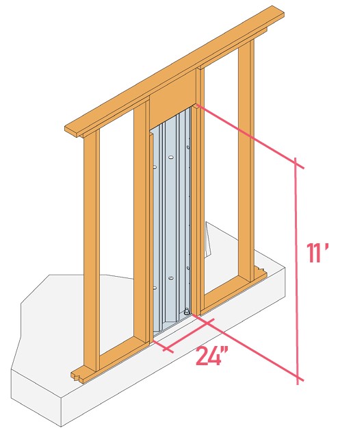 Emplee los planos S-1 “Foundation & 1st floor plan” y S-2 “2nd floor framing plan” como plantillas de referencia. A continuación se ilustran las dimensiones del elemento a insertar: